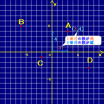 平面上の点の座標は2つの数字を使って表わします. 例1