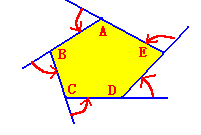 だから,三角形,四角形,五角形,....のどの形でも外角の和はつねに360゚になります.