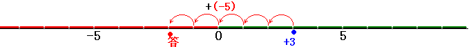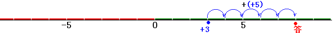 ■ 正の数を足すと,その分だけ右に動きます. 例 (+3)+(+5)=(+8)