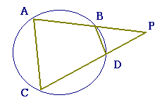 円外の点Pを通る2直線が円と交わる点を各々A,B及びC,Dとするとき,次のうち正しいものはどれか.(正しいものをクリック)