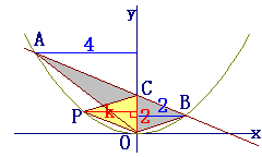 PはOとAの間にあるからPのx座標は,x≦0 ゆえに,Pの座標は,x=[キ],y=[ク]