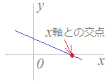 x軸を表す直線の方程式はy=0です.⇒ x軸との交点の座標を求めるためには,y=0を代入してx座標を求めます. 【例】 直線3x+4y=24とx軸との交点を求めるには, y=0を代入→3x=24→x=8だから交点の座標は(8, 0) ![]() |