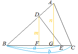 2つの三角形の底辺の比がa:b ,高さの比がm:n のとき,面積の比はam:bn になる.