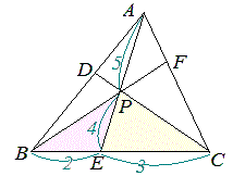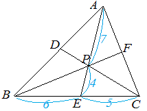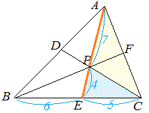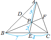 右図のようにAP , PE を底辺とみると,高さが等しく,底辺が7:4