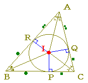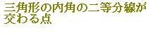 △ABCの各辺が同一円の接線になっているとき,この円を△ABCの内接円といい,内接円の中心を△ABCの内心といいます.・・・オ□ 内心の性質 △ABCの角A,B,Cの二等分線は,内心で交わります.・・・カ |