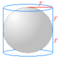 ○ 円を直径の回りに1回転してできる立体を球という.「球」というときは中身の詰まったもの(球体)を考え,その表面だけを考えるときは「球面」という. ![]() ○ 卓球,テニス,サッカー,バレーボールなど多くの「球技」で使われるボールは,表面のわずかな模様の違いを別とすれば球の形をしている.(ラグビー,アメリカンフットボールのボール,卵などの形は球ではない.)地球は,赤道のあたりが少しふくらんでいるが,ほぼ球の形になっていると考えてよい. ○ ギリシャのアルキメデスの時代から,円柱にすっぽり入る球の体積は,円柱の体積の3分の2になることが知られていた.このことは円柱に水を入れておき,球を沈めてあふれる水の分量を調べると確かめることができる. ○ 右図のように球の外側にぴったり接する円柱を作ると,その底面は半径が r の円,高さは 2r になるから,円柱の体積は V=×2πr3=πr3 ![]() |