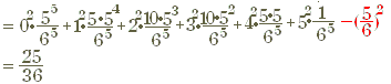 ■まったくの初心者向け■ 【 二項分布の簡単な例 】 1個のさいころを1回投げて1の目が出る確率は, このとき,さいころを5回投げたとき1の目が2回出る確率は