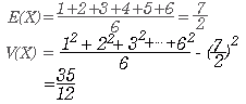 V(u) = E(u2)-E(u)2 = 35÷24 - 0.0422 = 1.457 E(X) = 155.0 + 10×0.042=155.4 V(X) = 102×1.457=145.7 |