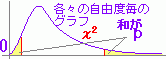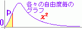 ■Excelの利用■(解説) ○ CHIDIST(カイ2乗値, 自由度) 右図のようなχ2分布関数[chi-square distribution]において,正の数xと自由度を指定したとき,P(X≧x)となる確率を返す. 次のχ2分布表との関係では,