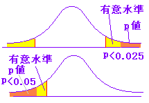 (計算結果がp値 [有意確率・・・帰無仮説を前提としたときに,その値よりも外側に来る確率] で表示される場合には, p値<有意水準 のとき帰無仮説を棄却する.)