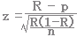 z = (R - p)/ =(0.6-0.5)/ 0.0245 = 4.08>1.65