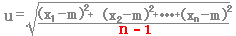 ※ Student のt分布 Studentは,「学生の成績の分布?」とは関係ない.この分布を研究した統計学者のペンネーム 正規分布や二項分布のように,実際にt分布に従う事象があるのでなく,標本の性質(統計量)から母集団の性質(母数)を推定するための正規分布の補正表というべきか. ○ 母標準偏差σが未知のとき,nが大きければ標本標準偏差sで代用できるが,nが小さくなるほど誤差がひどくなるので,標本の値から母標準偏差σを推定するには標本(不偏)標準偏差 u を用いる.(これは単なる経験則でなく,理論の裏付けあり.) ○ 標本 x1, x2, ・・・ , xnの(単純な)標準偏差 u2 はどの書物でも「不偏分散」と書かれているが, u は「母標準偏差の不偏推定値」「不偏分散から求めた標準偏差」「標本に基づいて予測した標準偏差」などと表記は多様.気楽に"不偏偏差"といいたいところだが,手持ちの書物にはこの用語はない.専門家にとっては不偏推定量を使うのが当然なので,uのことを標本標準偏差,標準偏差と呼ぶ場合もあるが,このページでは初学者に区別が分かりやすいように,s:標本(単純)標準偏差,u:標本(不偏)標準偏差,σ:母標準偏差とする. ○ 母標準偏差:σ,標本(不偏)標準偏差:u,標本(単純)標準偏差:sの関係 ・標本(不偏)標準偏差:u は母標準偏差:σの近似値として使える:u≒σ ・定義から ・n>30のときは,σ, u, s はほぼ等しい. ※ 自由度 例 2次元のxy平面全体ではxもyも自由に決められるので,自由度は2 しかし,xy平面上で x+ y = 1 という条件を満たすx,yの組では,xを決めるとyが決まるから,自由に決められる変数は1個 自由度は 2 - 1=1 例 3次元空間ではx,y,zが自由に決められるから,3次元空間全体の自由度は3 しかし, x + y + z = 5 という条件を満たすx,y,zの組では,x,yを決めるとzが決まるから,自由に決められる変数の数は2個 自由度は 3 - 1 = 2 このように,条件式を1つ追加すると,自由度は1個減る. ○ 平均値が m となる変数の組 x1 , x2 , … , xn は,次の方程式を満たす. m = ( x1 + x2 + … + xn )