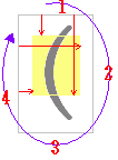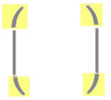 | ◇字形の一部分を表示するには◇ 右図上の黄色で示したような字形の一部分だけを表示するには, style="clip:rect(auto auto 10px auto); ;overflow:hidden;" のように( )内に上右下左までの距離を記入すればよく,autoとすれば端まで表示されます.(順序は,右回りということらしいです.) インターネット上では, http://www.htmq.com/ などで説明を読むことができます. 今の場合,20pxの文字の下方向へ10pxまでの部分を使うと,字形の上半分が切り出せます.このような方法で大きめの ( ) の字形から,行列の括弧に使う左上,左下,右上,右下を切り出し,残りの部分を | で継ぎ足したものが,右図下のイメージです. 継ぎ目が目立たないように,同じ程度の太さの線を使うことと,隙間ができないように重ねるように気をつけます. |