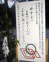 藤原家隆が 風そよぐならの小川の夕暮れはみそぎぞ夏のしるしなりけり と詠んだのはこの神事のことである。 事ごとにお祓いを大切にする神事のなかでも、夏越しの祓は大晦日から元旦にかけての年越しの祓と共に重んじられ、大祓(おおはらえ)とも言われる。 興味をお持ちの向きには一度訪ねてみられる事をお勧めする。 TY