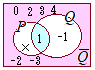 [集合図の包含関係で示す場合]条件p, qに対応する集合をそれぞれP, Qで表すと 右図のようにP⊂Qだからp⇒q 他方で,−1∈Qかつ−1∉Pだから,逆は成り立たない.P⊅Q すなわち,p : x=1 B→コ