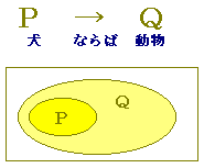 論理的な関係p⇒qpならばq)は,集合ではP⊂Qに対応します.