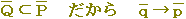 逆に,が成り立つとき,すなわち  のとき,P⊂Q だから p→q です.