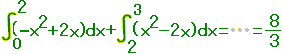 (2) y=x2-xの曲線とx軸とで囲まれる図形の面積