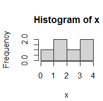 right=Fを指定すると,0≦x<1, 1≦x<2, 2≦x<3, 3≦x<4の区間に各0,1,3,1個あるというグラフになる. 日本では,この分け方が普通だから,right=Fと決める方がよい. |