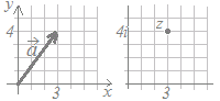 のように(x成分,y成分)をカンマで区切って表し,初めに書いた数字がx成分,2番目に書いた数字がy成分を表すものと決めます.このとき,(3, 4)と(4, 3)は異なるベクトルになります.○ 複素数はz=3+4iのように表します.これはベクトル(3, 4)に対応しています. 図3 ![]() |