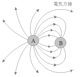 Aの電荷が+Q[C]でBの電荷が−Q[C]というように符号だけが異なり大きさが同じときは,Aから出た電気力線はすべてBに入るが,この問題のように大きさが異なるとき,残りの電気力線は無限遠点に向かう.