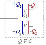 Q=Q1+Q2,V=V1=V2