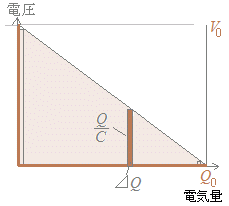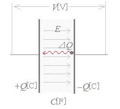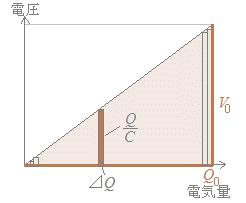 したがって,ΔQ[C]の電荷が,そのときの電圧V[V]から受ける力は