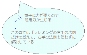 この頁では,「フレミングの左手の法則」「フレミングの右手の法則」などと紛らわしいことを幾つも覚えずに,「フレミング左手の法則」だけを確実に使うという考え方で解説する.