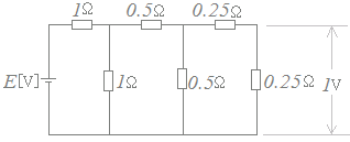 末端の抵抗0.25[Ω]に加わる電圧が1[V]だから,電流は
