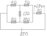 4:5=10:8だからブリッジは平衡状態にあり,12[Ω]の抵抗には電流は流れない.