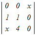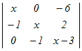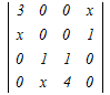 =3 −x +0−0=0各々の3次行例式を1行目に沿って展開する 3(0−0+ )−x(0−0+x )=03(4−x)−x(x(4−x))=0 12−3x−4x2+x3=0 x3−4x2−3x+12=0 この3次方程式を因数分解によって解く x2(x−4)−3(x−4)=0 (x−4)(x2−3)=0 x=4, ± 自然数解は x=4 → 4 |