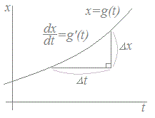 つまりΔx≒g’(t)Δt 極限移項したときの記号としてdx=g’(t)dt