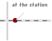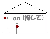 (広がりを考えない、狭い場所,町,村など)・・で,・・に