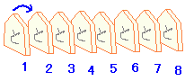 n=2 のとき 1+3=22 が成り立つ n=3 のとき 1+3+5=32 が成り立つ よって,どんな n についても 1+3+5+ … +(2n - 1)=n2 が成り立つ この証明では 3 までしか調べていない.n=4 , 5 , 6 , … の場合について何も証明されていないことが分かる. そこで,まじめな生徒なら 100 まで調べるかもしれないが,それでも 101 以上は根拠のない作り話になってしまう.仮に,10000まで,100000まで調べても「整数は無限にあり,全部を調べることはできない」ので,この方法では結局証明はできない.広く用いられている帰納法,あるいはここで失敗した方法は「単純な数え上げ」の方法をとっていることに特徴があり,整数が無限にあるのに1つずつ調べていく方法にそもそも無理がある. このやり方では幾らやってもすべての自然数について成立することはできない. ところが,「すべての・・・」について成り立つことが証明できるものがある.これを右の例で見てみよう. 右に続く→