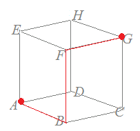 問題1次の立方体ABCD-EFGHにおいて,頂点AからGへ遠回りをせずに辺をたどっていく方法は何通りありますか.(図の赤線はそのうちの1つの例です)