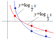 log33<log23のように,底が小さい方の対数が大きくなります.