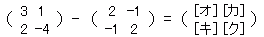 2つの行列の型が一致するとき,行列の差を次のように定義します。