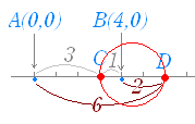 2定点 A(−2 , 0) , B(6 , 0) からの距離の比が 1 : 3 である点の軌跡を求めよ. |