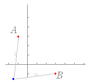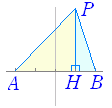 ※ 記号 AP は線分 AP の長さを表わし,AP2 は AP×AP を表わす. 例えば AP=3 ならば AP2=9 となる. 一般の文字式 ab2 などとは異なり, P だけを2乗している訳ではない. (参考) 左の問題を,中学校で習う三平方の定理で考えると次のように解ける.AP2=AH2+PH2 - ) BP2=BH2+PH2 AP2−BP2=AH2−BH2=8 ここで AH+HB=4 だから AH−HB=2 となる点 H に立てた垂線 HP 上に P があればよい. |