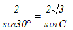 △ABCにおいて、a=2 , , A=30°, のとき、Cを求めてください。