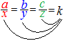 次のような「比例式」の変形に慣れることが重要です。 (1) 比例の関係を分数に直すには、2つの考え方がありますが、3つ以上のときにも使えるのは、番号順に対応させる方法です。