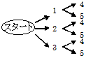 | ■樹形図、辞書式配列 場合の数を「もれなく」「重複なく」数えるために広く使われる方法として、「樹形図」と「辞書式配列」があります。 樹形図は、図1のように時間の経過にそって考えていくのに適しています。 辞書式配列は、図2のように出来上がったものを整理するのに適しています。