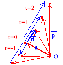 直線のベクトル方程式によって表されているベクトルは、位置ベクトルなので 「直線の中に埋まっているものではなく」「原点から直線上の1点に向かうもの」です。