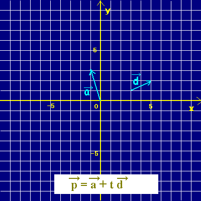 ≪問題≫ 図に示された直線のベクトル方程式において,t が次の値になるときの点Pの位置を示しなさい。.