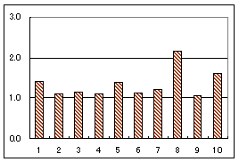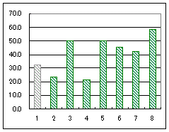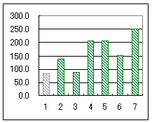 グラフ2は横軸が問題番号,縦軸は直前の操作以降その問題の採点までの経過時間を表わす.ただし,第1問は初めからの時間.