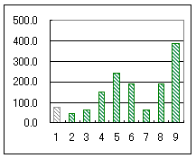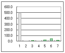 グラフ2は横軸が問題番号,縦軸は直前の操作以降その問題の採点までの経過時間を表わす.ただし,第1問は初めからの時間.