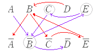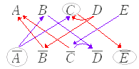 特に,A → B かつ B → A のとき A=B が成り立つ. A → B → C → A のように輪ができるときは,A=B=C