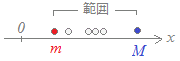 散らばり具合を表す簡単な数値は,最大値Mと最小値mの差で定義される「範囲(レンジ)」です. 範囲=M−m