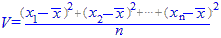 偏差の2乗の平均値のことえお分散といい,よく利用されます.分散は,1個当たりのズレを表しますが,元の変数xk (k=1,2,3,..)とは単位や大きさの尺度が違うことに注意しましょう.(たとえば,元の数値がcm単位であるとき,分散の単位はcm2になります.)