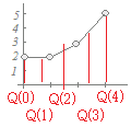データを小さい順に並べたときに4等分する順位の値を四分位数といいます. 四分位数は,データを小さい方から25%となる値:第1四分位数,小さい方から50%となる値:第2四分位数,小さい方から75%となる値:第3四分位数からなり,各々Q1 , Q2 , Q3で表します.